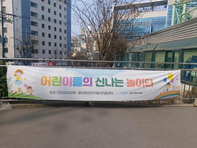 현수막 제작 후 실착 사진입니다. 인쇄와 마무리 깔끔하게 잘되었습니다. 다만 게시 기간이 좀 길다보니 원단이 조금 더 두툼하면 좋겠습니다.