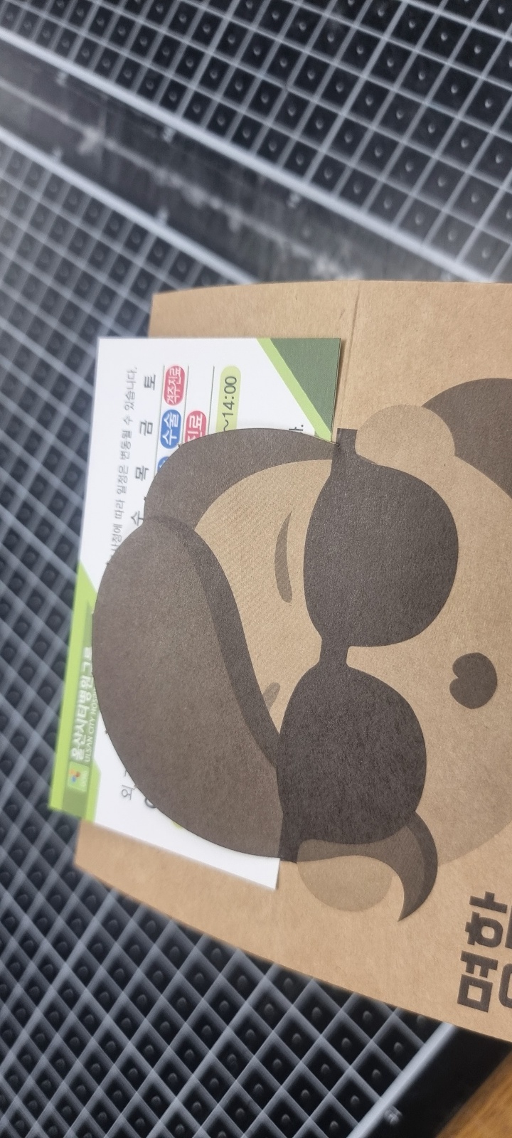 작년에 출고된 건인데, 글씨가 너무 작아서 재작업 하러 오셨네요~ 글씨 키워서 다시 작업한 겁니다~ 일반명함 90*50 사이즈 깔끔하게 잘 나왔네요~