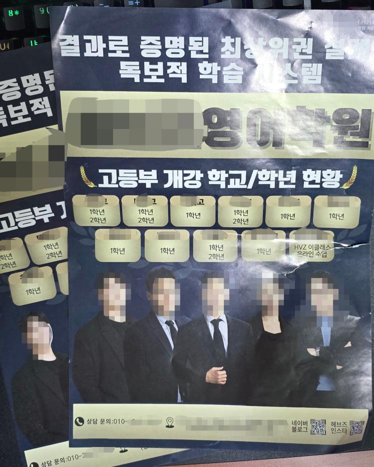 인물 사진이 주가 되는 학원 전단입니다.