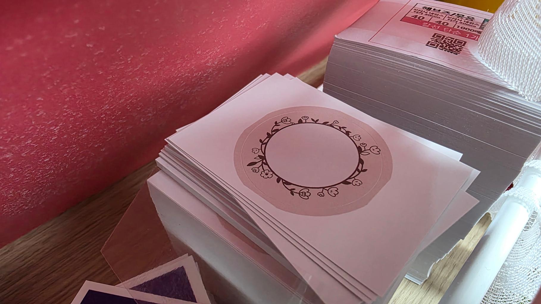 가성비 스티커 도무송 아트지 무광코팅입니다. 사이즈가 20mm라서 도무송으로 작업했구요, 500장이 3박4일 이라서 1000장 주문했습니다. 금액차이가 그리 크진 않아서요;;