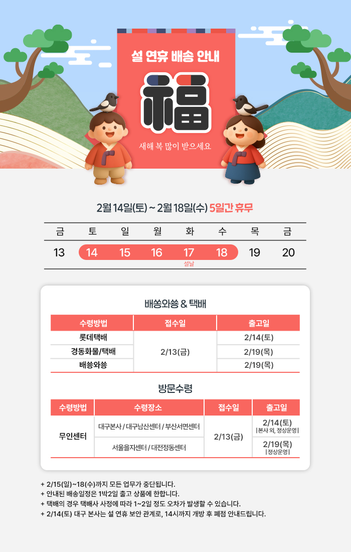 설 연휴 배송 안내