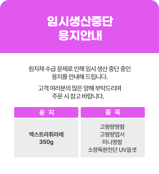| 547 | 임시생산중단 용지안내 | 2026.04.06 |