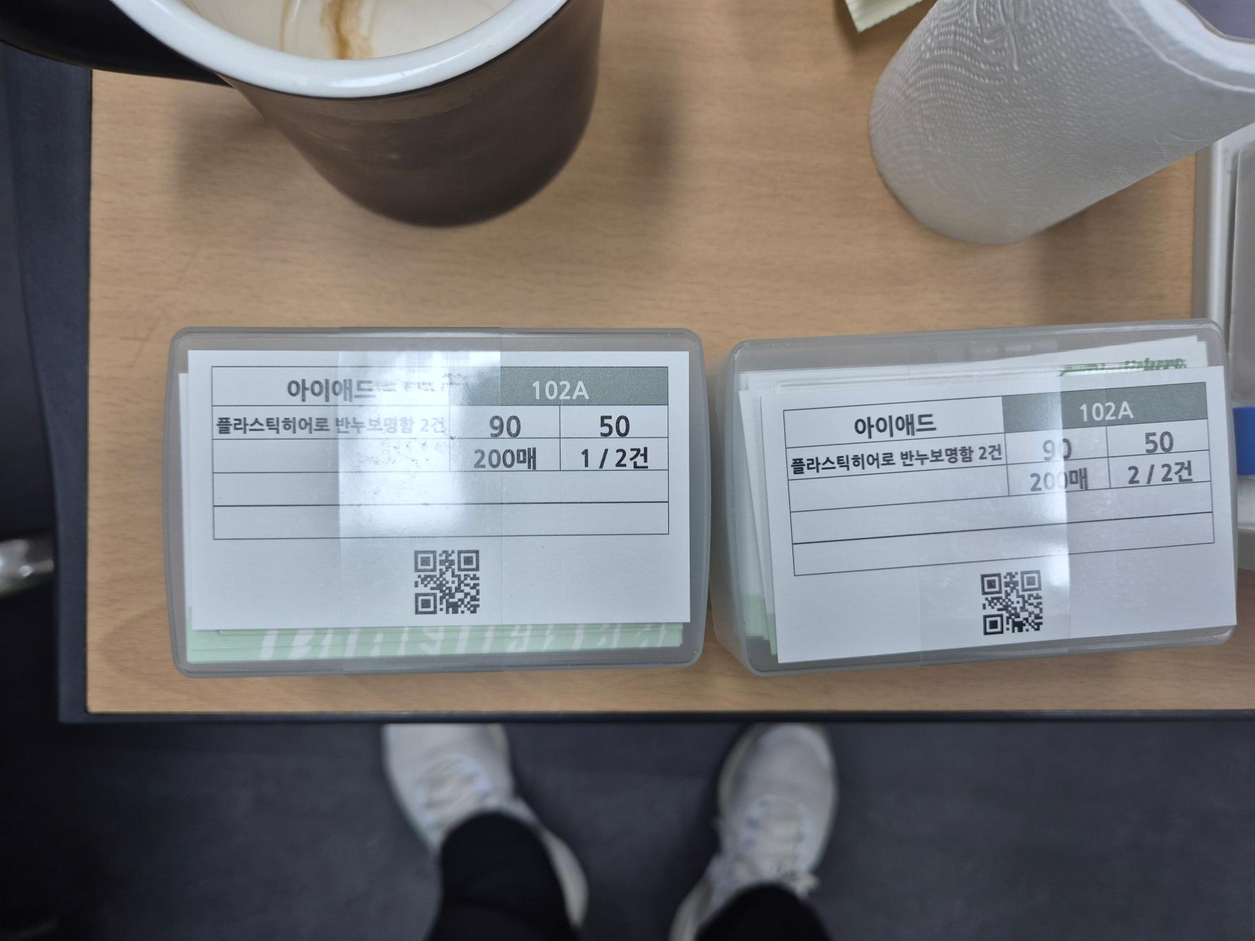 200매*2건 제작 인쇄 색상 원하는데로 잘 나왔고 재단선 깔끔합니다 직배송 감사합니다