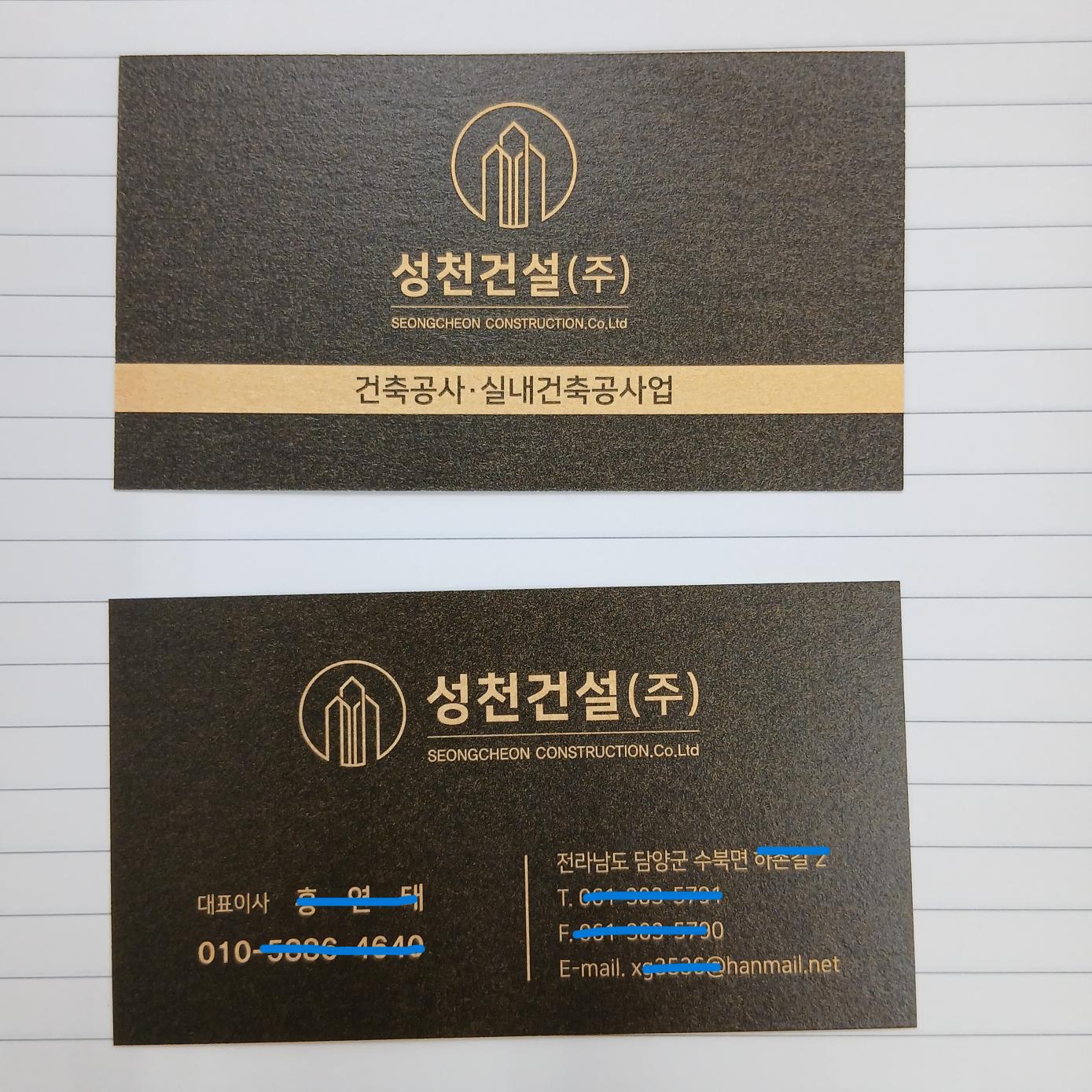 스타드림골드로 검정 바탕에 백색글자로 시안 작업했어요. 검정색 바탕이 골드색이베어나와서 고급지고 글자는 골드색으로 생각보다 예쁘네요~ 배송 잘 받았습니다. 같이 와야하는 다른 명함 누락으로 하루종일 애먹었습니다.