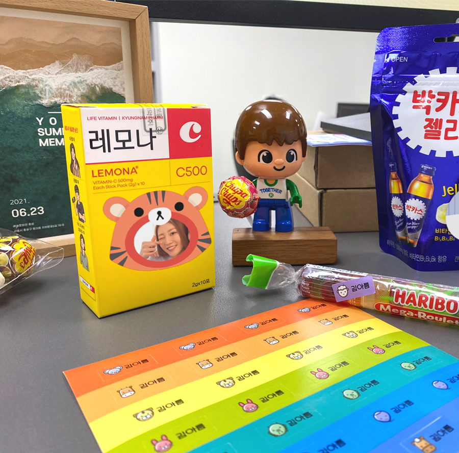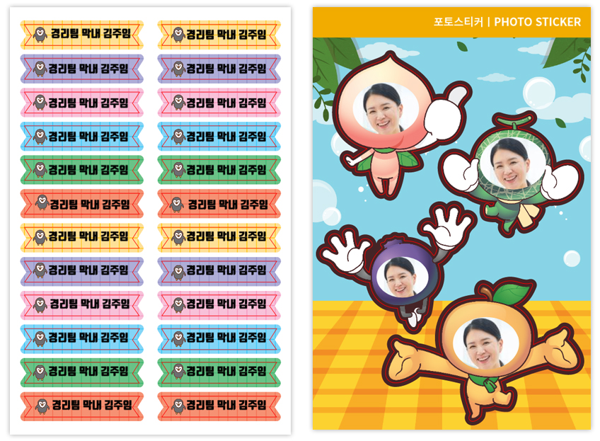 직접 만든 네임스티커나 포토스티커 한 장씩만 붙여주세요~!