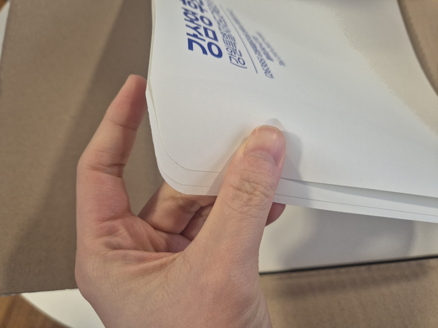 군청색 인쇄도 깔끔하고 이쁘네요 대봉투 저렴하게 주문했습니다 종이 재질 좋아요 기본봉투로 했는데 괜춘함