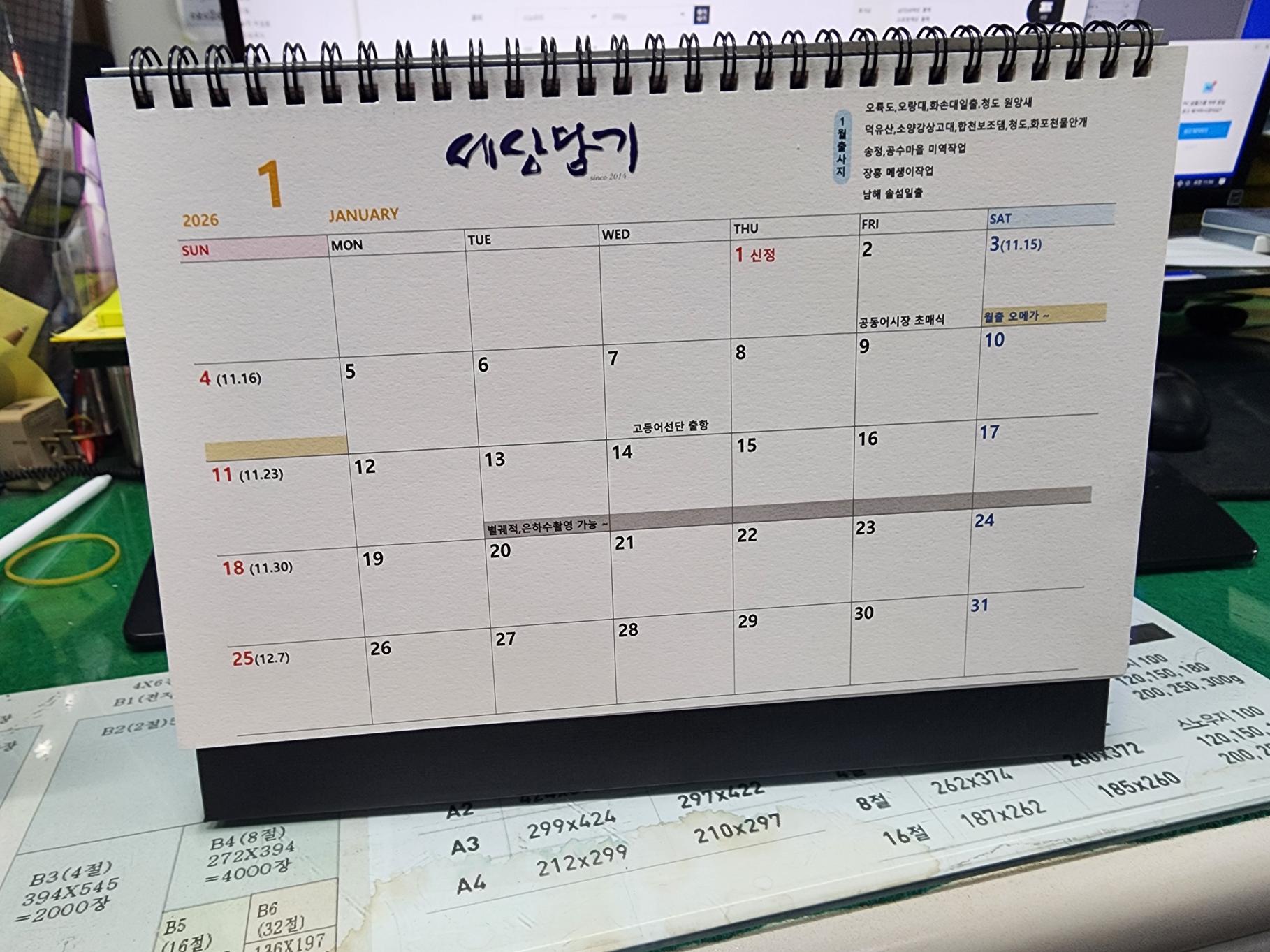 연말이라서 내년 2026년 달력 제작해서 주문했습니다 배송이 늘 빨라서 급할 때 이용하기 좋아요!